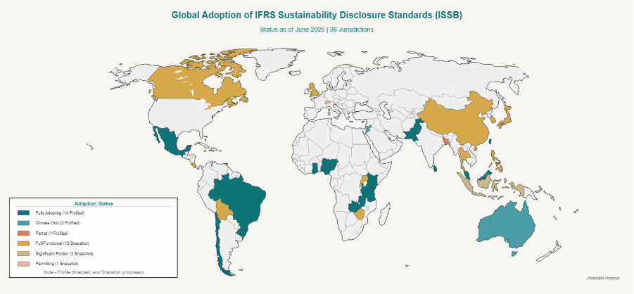Data Sourced from: IFRS Foundation publishes jurisdictional profiles providing transparency and evidencing progress towards adoption of ISSB Standards, June 2025