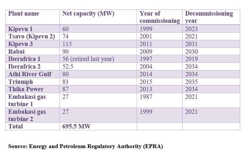Commissioned in 2011, Kipevu 3 is due for decommissioning in 2031, a 20-year lifespan.